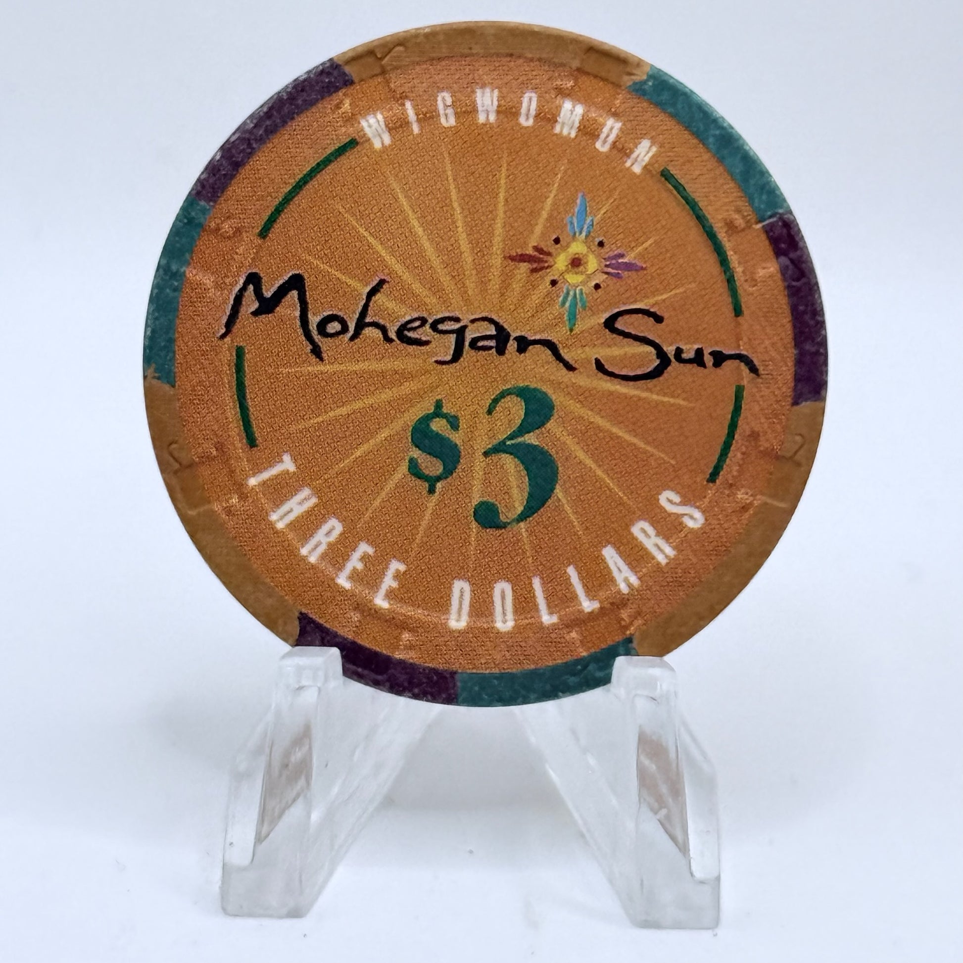 Step back to 1996 in Uncasville, when the doors of Mohegan Sun first opened, this $3 chip carries that same opening-day excitement.