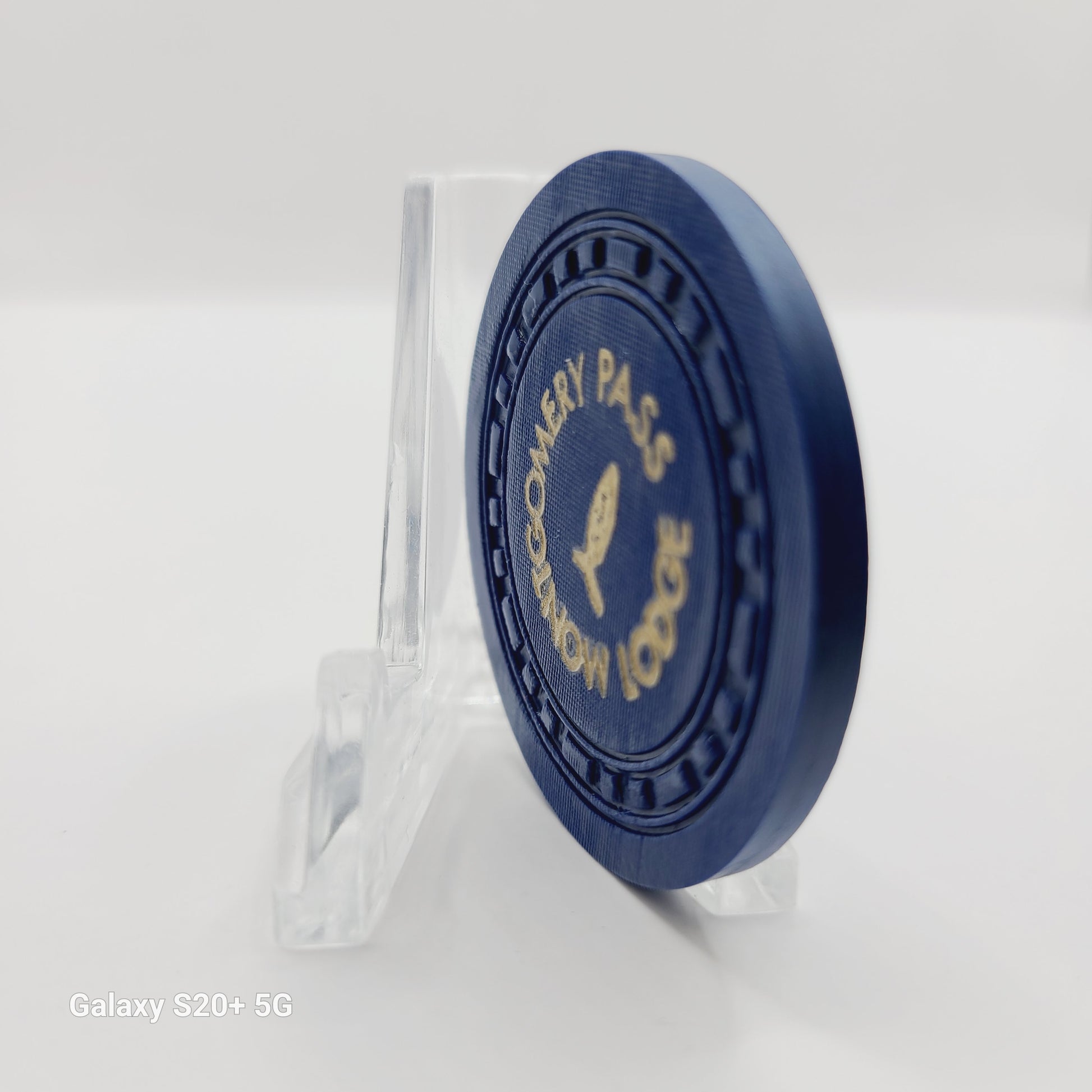 Discover this nostalgic "Roulette" chip from the iconic Montgomery Pass Lodge in Nevada. The lodge opened its doors in 1953 and welcomed guests until 1974. Add a piece of history to your collection with this navy-colored chip.