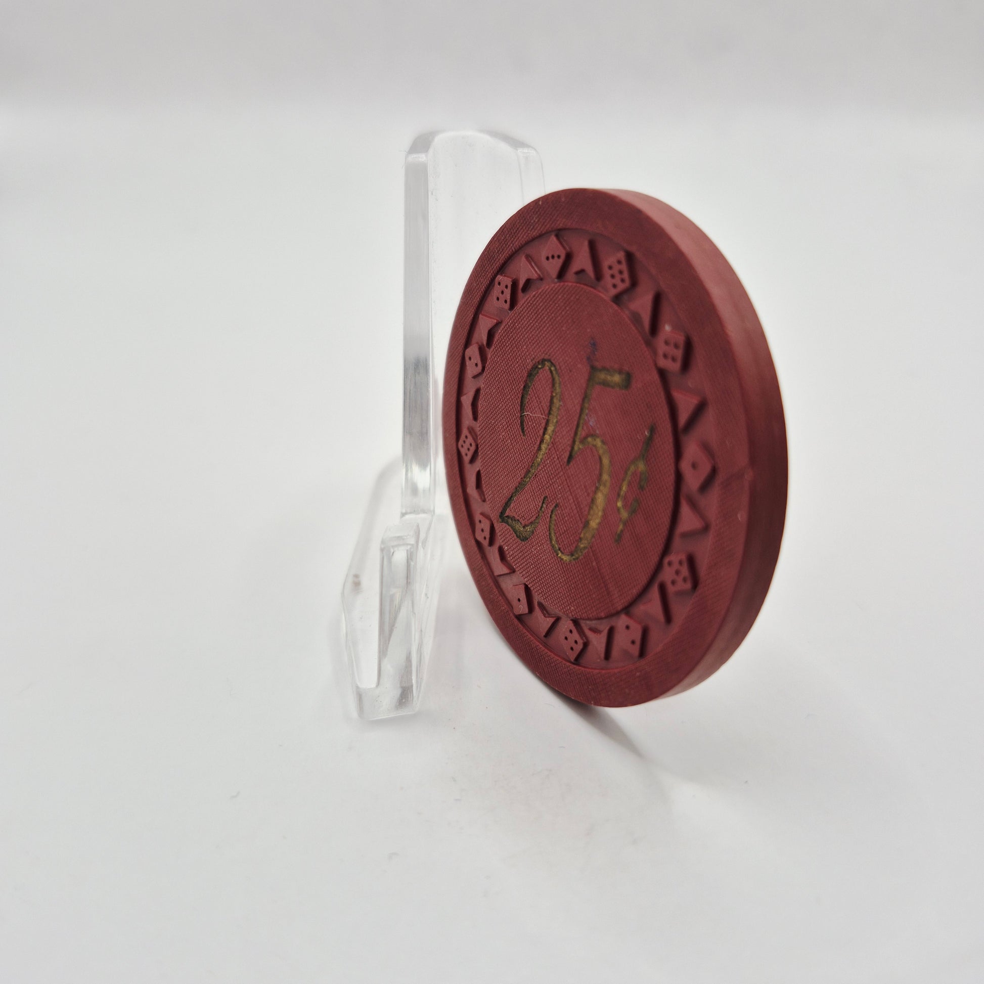 This vintage casino chip is a piece of history from the now-closed Nevada Club Casino in Reno. With a denomination of $.25, it gives a glimpse into the time when gambling was a popular pastime in Nevada. Own a piece of nostalgia with this 1954 D1297 chip.
