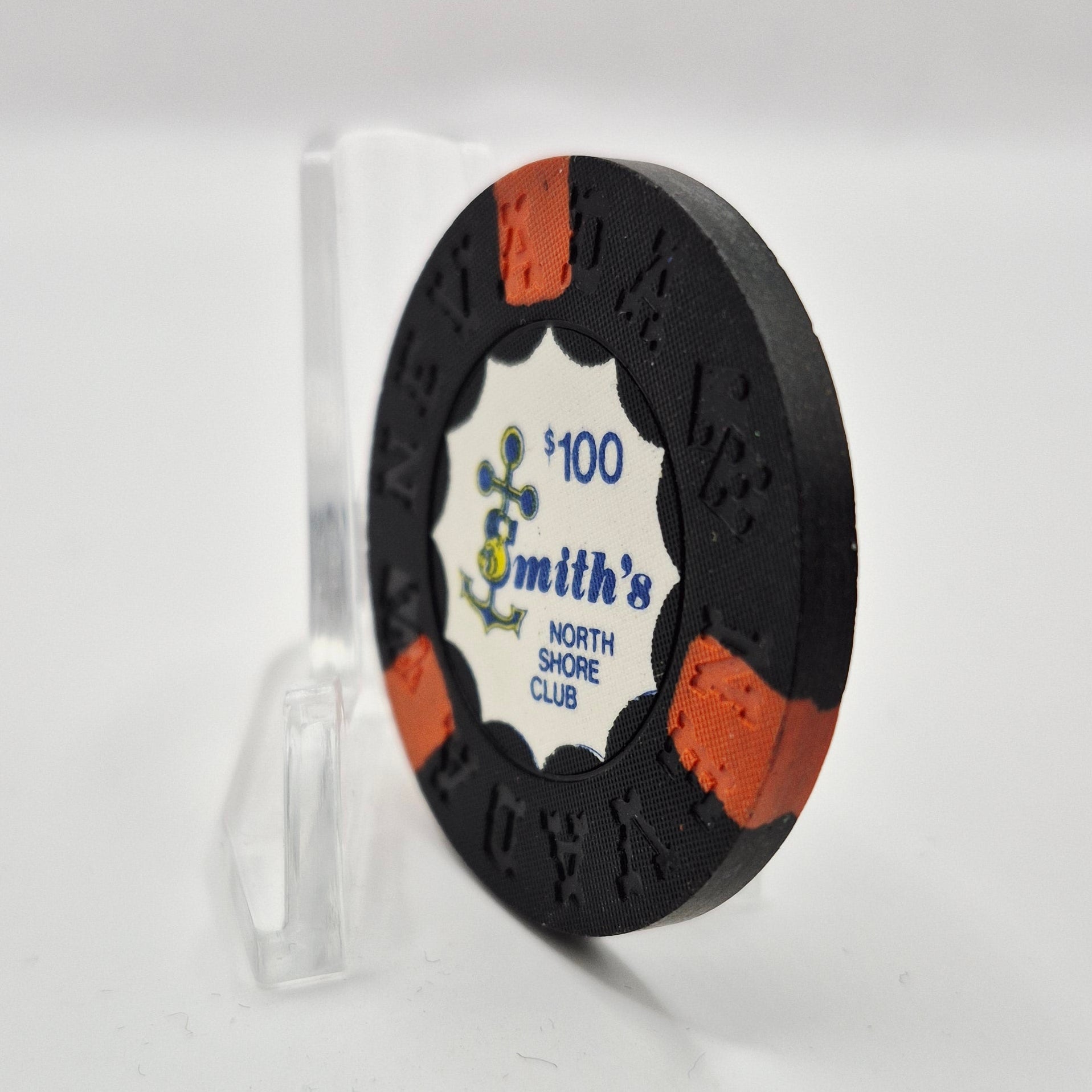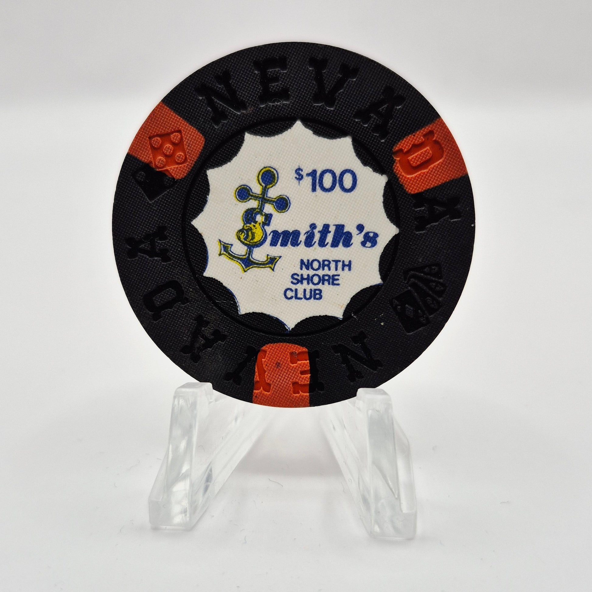 Experience a piece of history with the North Shore Club "Smith's" Lake Tahoe Nevada 1971 $100 Chip N5391. This rare casino chip was in circulation during the club's opening from 1970 to 1974. Add this unique piece to your collection and relive the excitement of the club's heyday.