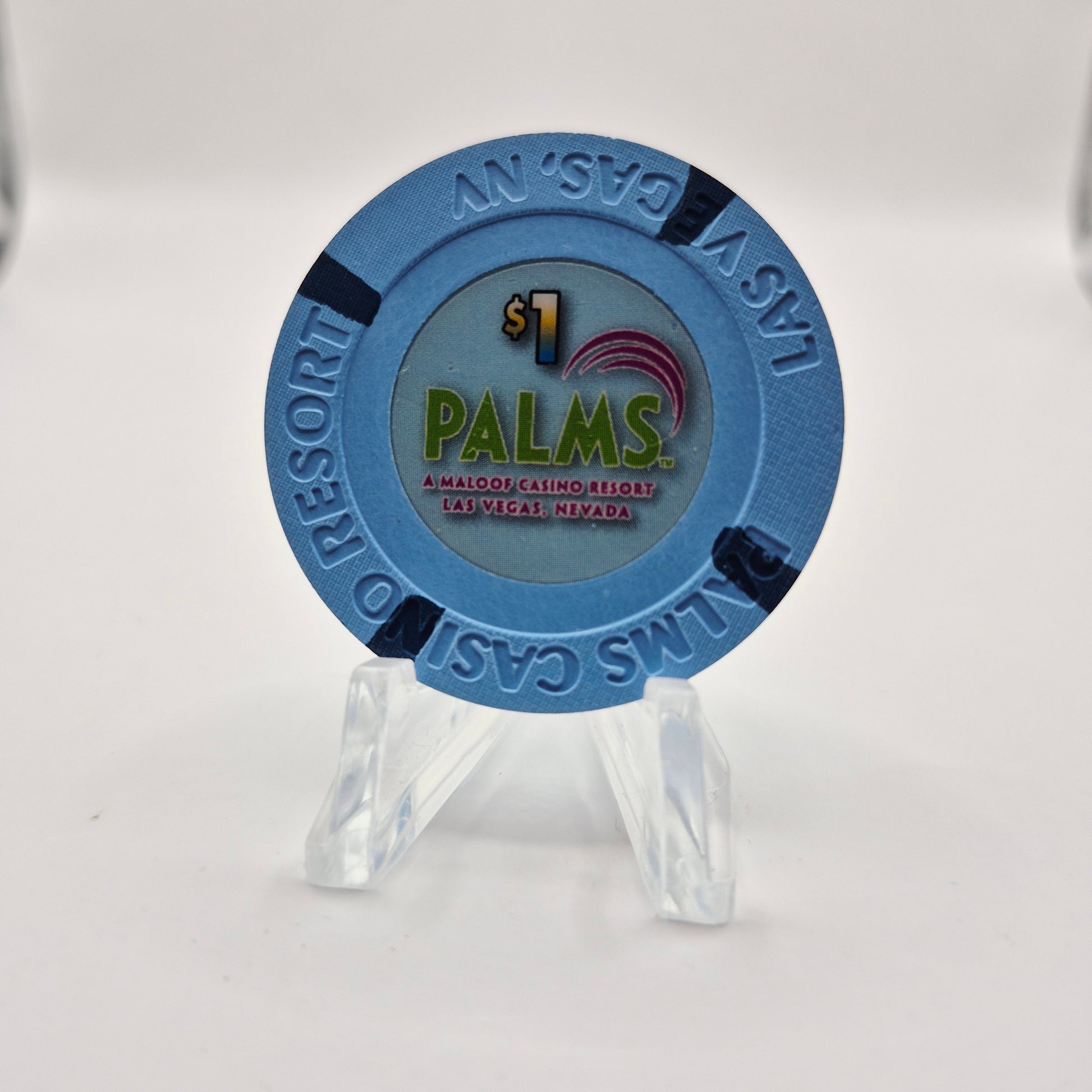Experience luxury and excitement at Palms Hotel Casino in Las Vegas. Opened in 2001 and closed in 2022, this iconic establishment boasts a $1 chip from their 2006 collection, making it a must-have for collectors and casino enthusiasts alike. Don't miss your chance to own a piece of history.