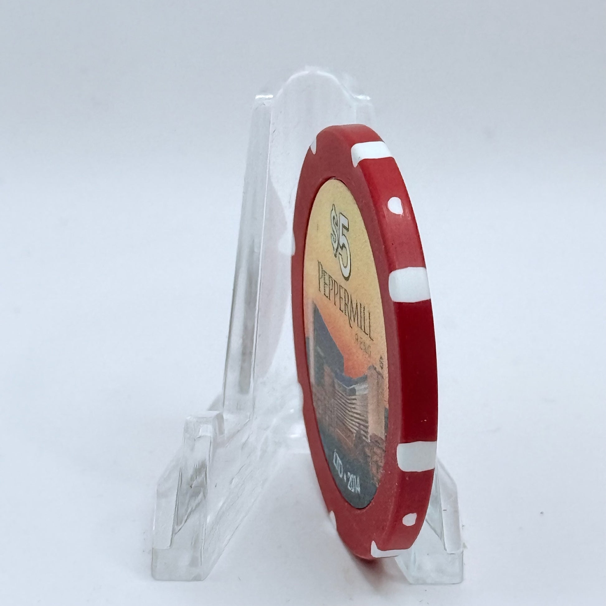 Capture the essence of Reno with this original 2014 $5 chip from Peppermill, opened in 1985.
