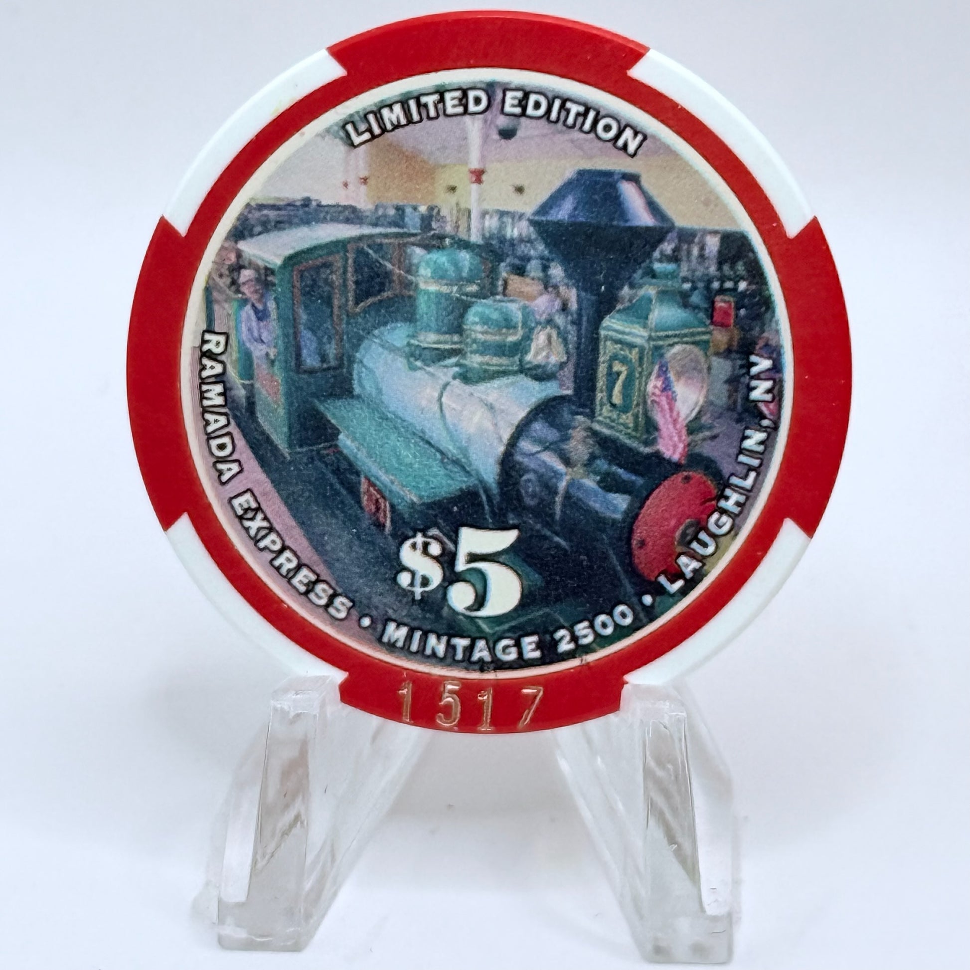 This original 2000 $5 chip from Ramada Express, which operated from 1988 to 2007, is a timeless token of Laughlin's rich gaming legacy.