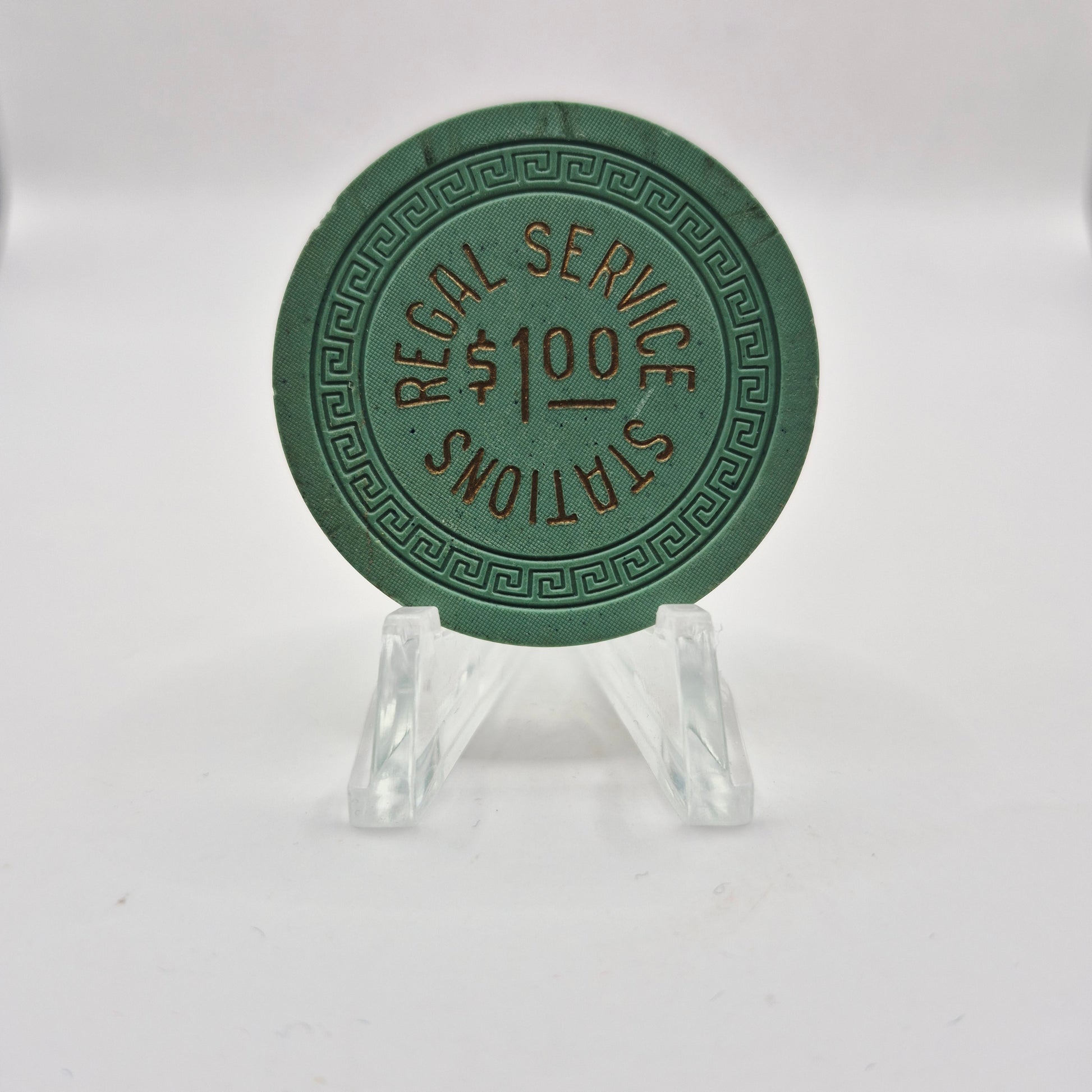 This $1 casino chip from the now closed Regal Service Stations in Reno, Nevada is a unique piece of gaming history. Collectors and enthusiasts will appreciate the rarity and value of this item. Add it to your collection today and own a piece of the past.