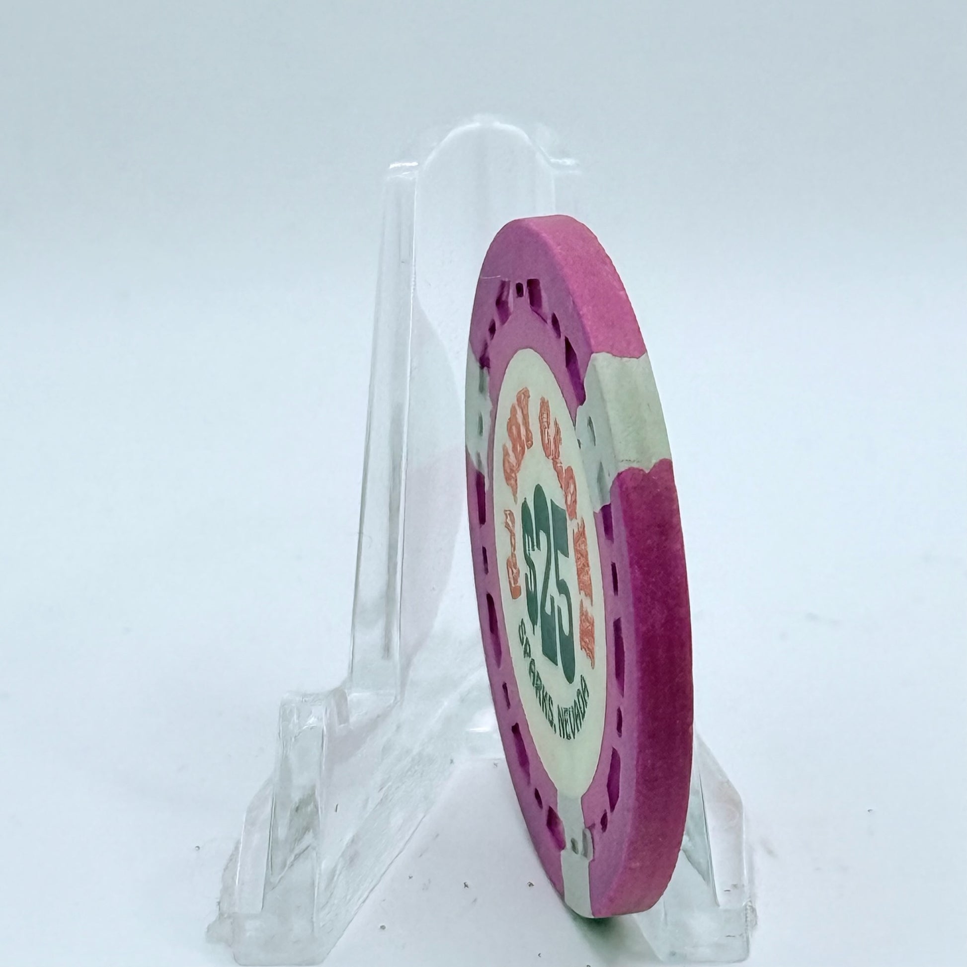 Capture a moment from the vibrant history of Sparks with this 1973 $25 chip, once in play at Rod's Shy Clown between 1974 and 1976.