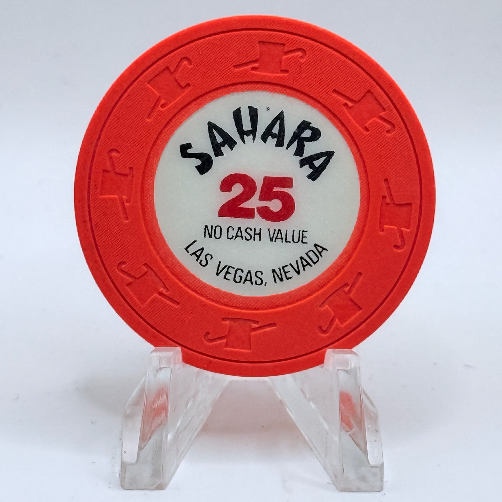 Own a piece of gambling history with this genuine 1980s $25 NCV chip from the legendary Sahara, open from 1952 to 2011.