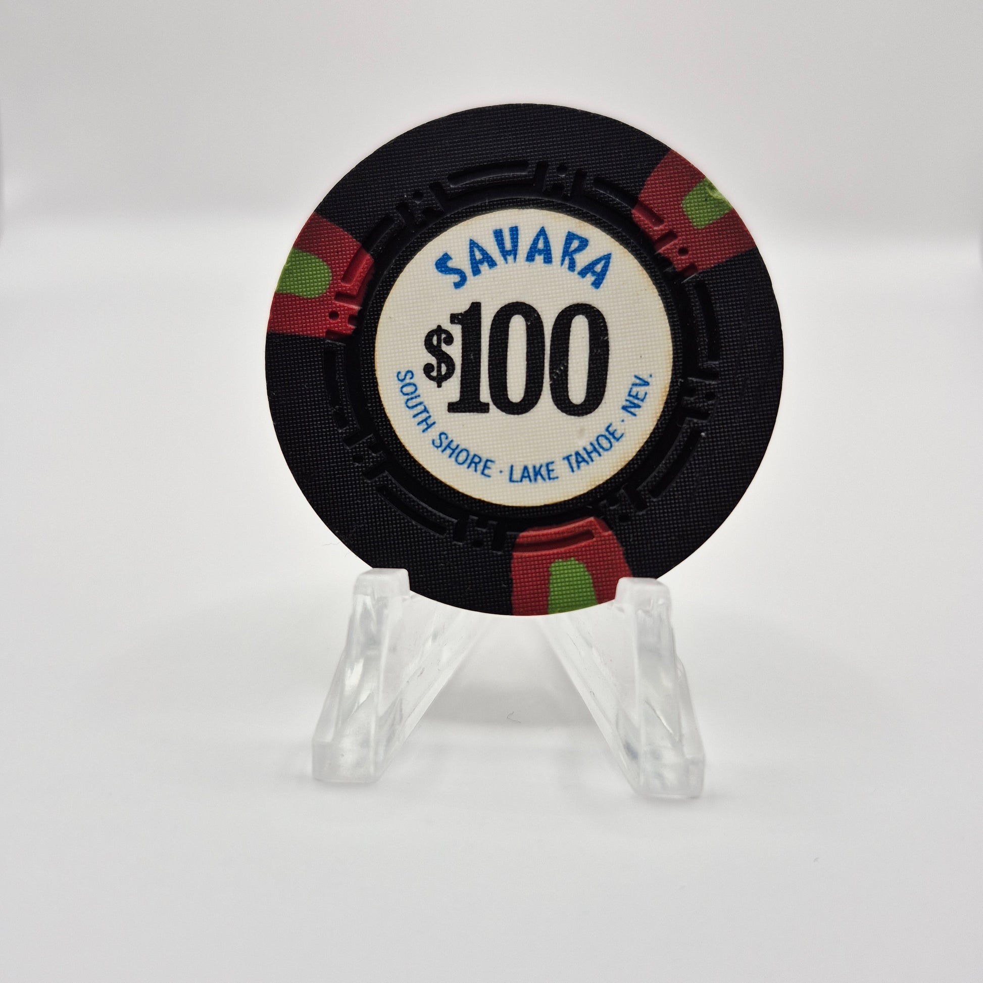 Sahara Tahoe The Sahara Tahoe Casino Lake Tahoe NV $100 Chip is perfect for any collector. This chip features a unique design from the legendary Sahara Tahoe Casino. It's a rare find and is sure to be a great addition to any collection.