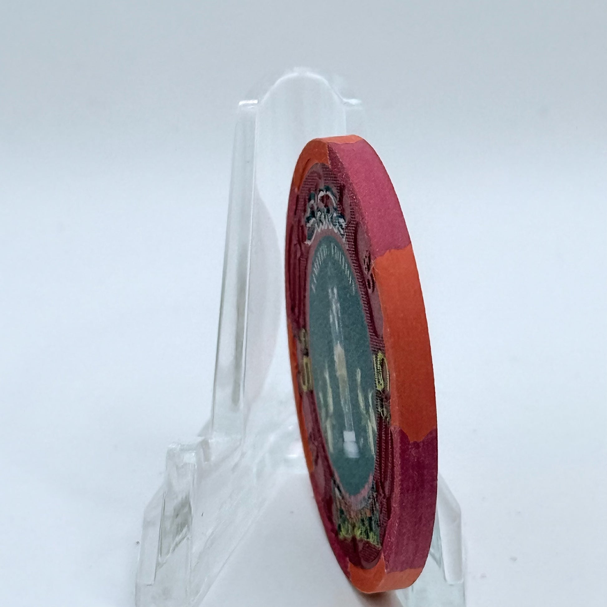 Capture a moment from the vibrant history of Atlantic City with this 1995 $5 chip, once in play at Sands between 1980 and 2006.