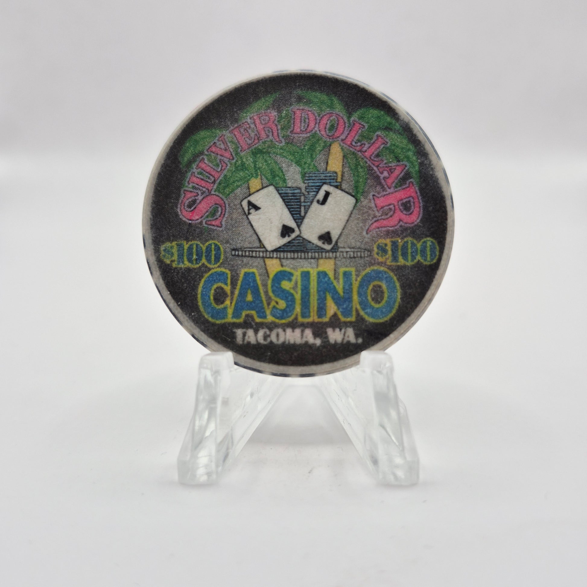 This $100 chip from Silver Dollar Casino Tacoma Washington is the perfect memento or gift. The casino is now closed, making these chips rare and special.
