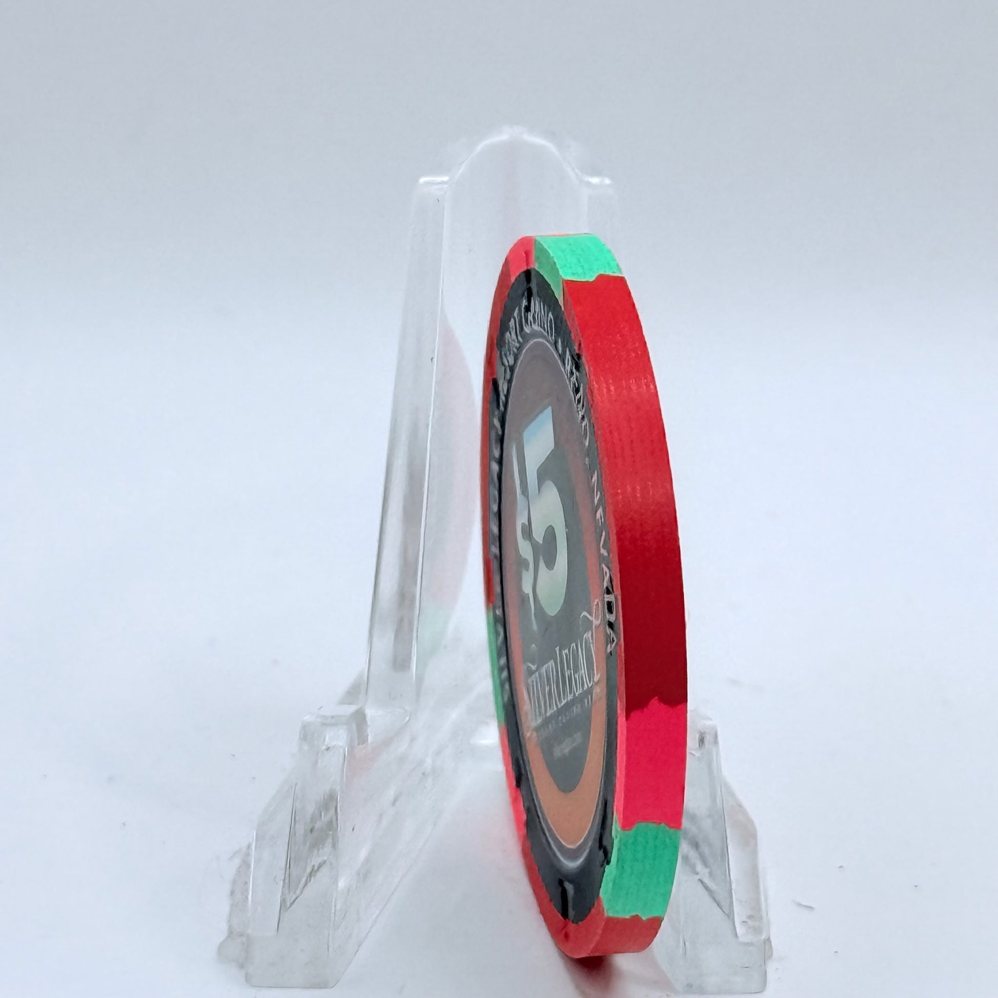 Capture the essence of Reno with this original 2001 $5 chip from Silver Legacy, opened in 1995.
