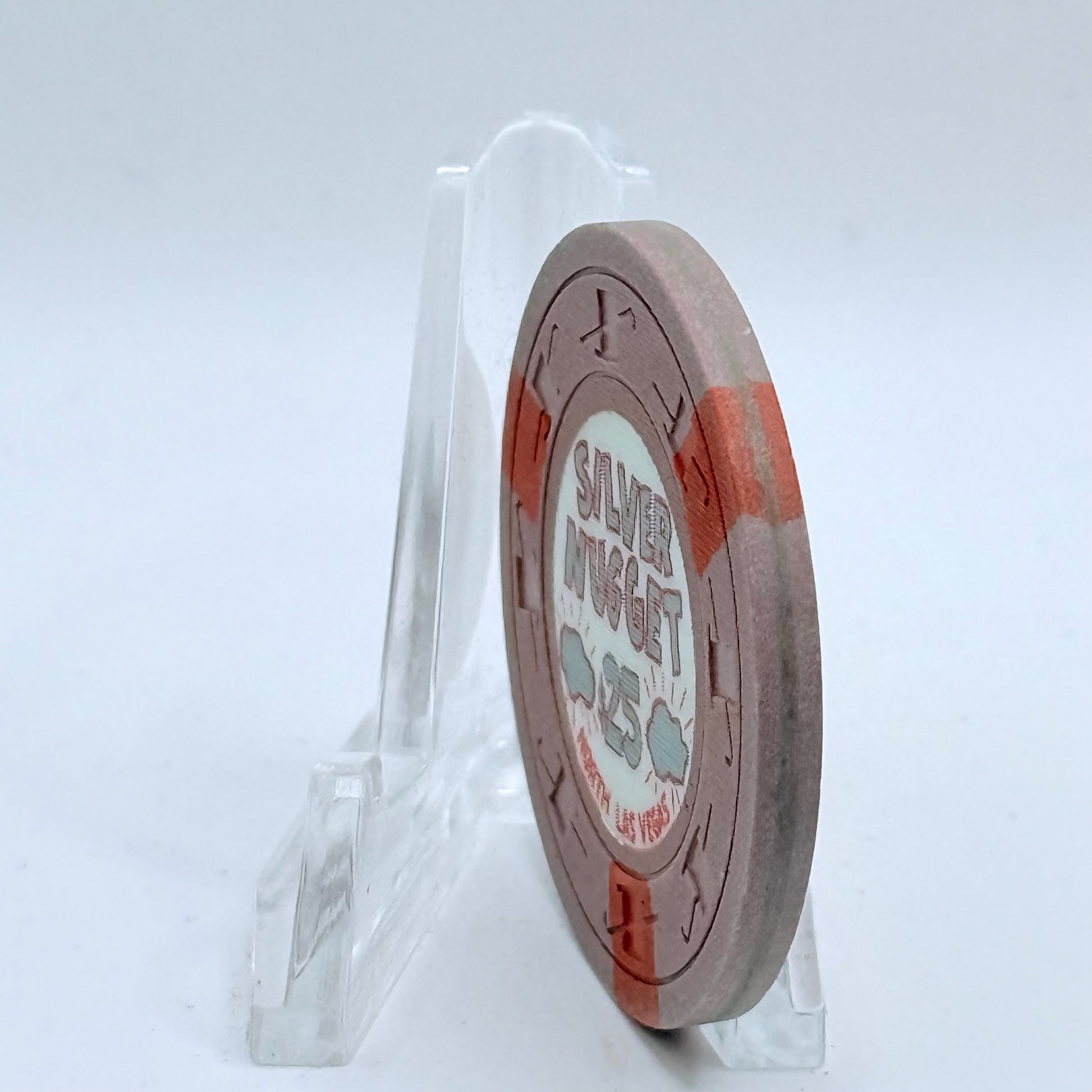 Capture a moment from the vibrant history of N. Las Vegas with this 1965 $25 chip, once in play at Silver Nugget between 1965 and 1989.