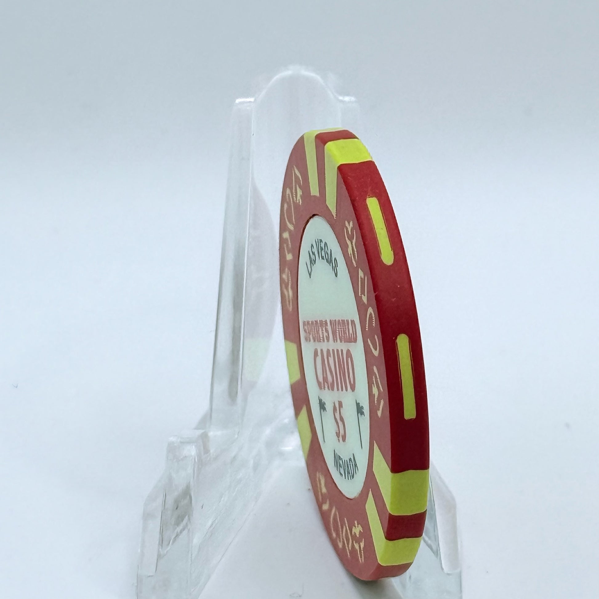 Whether you're a collector or a fan of casino history, this 1998 $5 chip from Sports World Casino, opened from 1998 to 2001, is a true conversation piece.