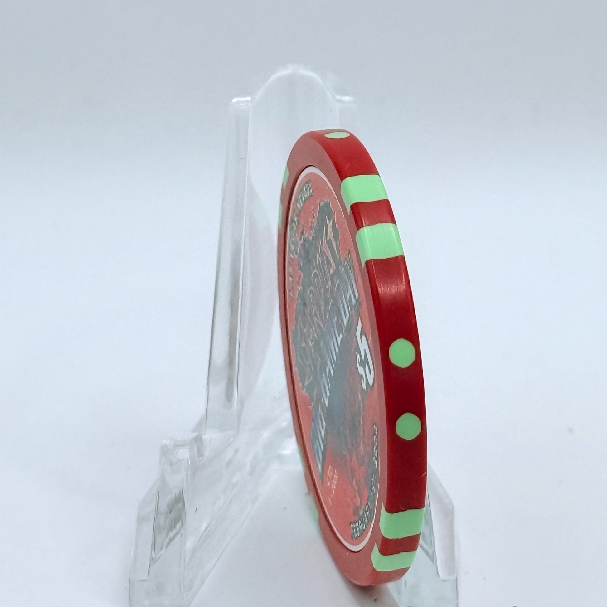 Step into the heyday of Stardust with this 2004 $5 chip, a genuine artifact from its run between 1958 and 2006 in Las Vegas.