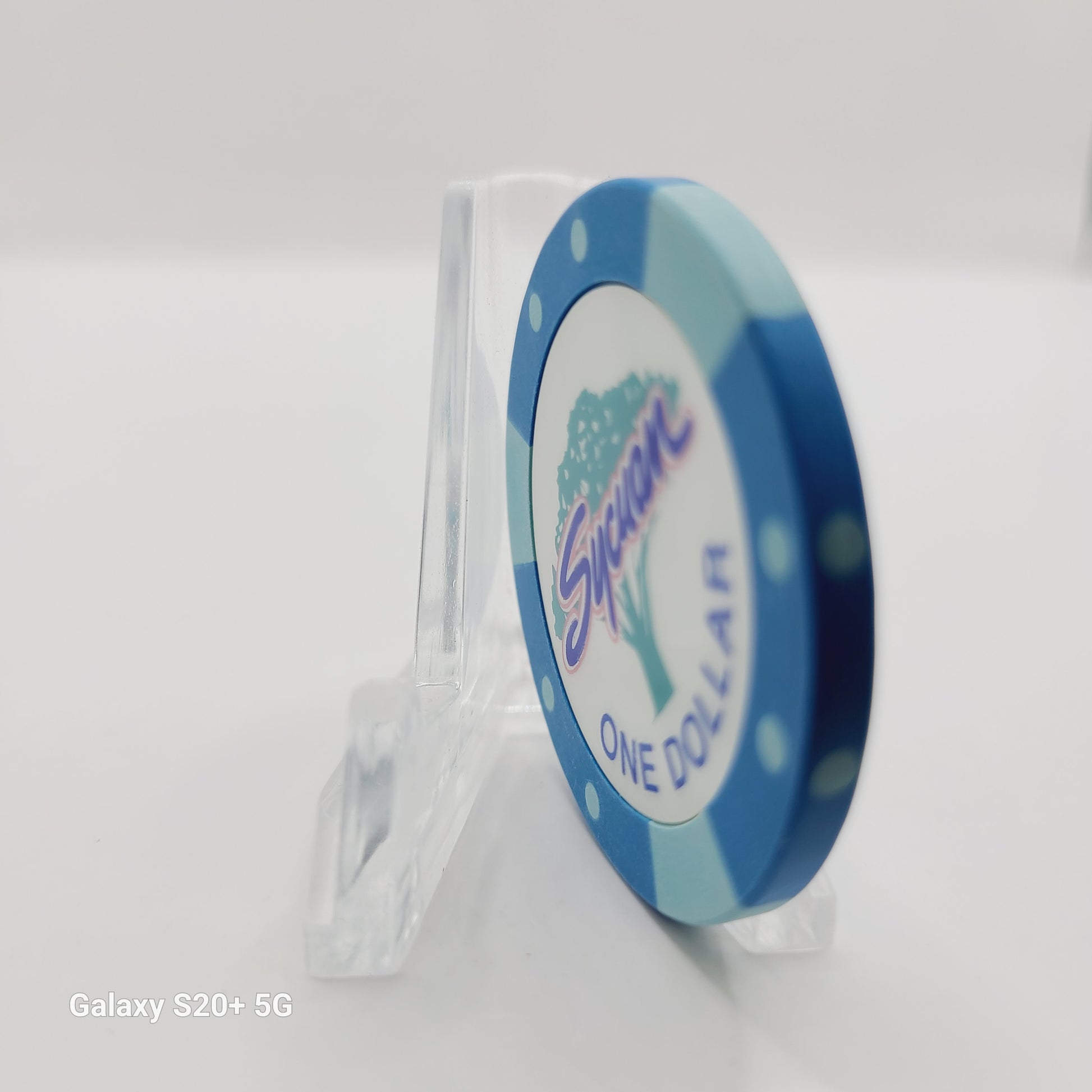 Experience the excitement of Sycuan Casino in El Cajon, California with this $1 casino chip. Featuring the year 1983, this chip offers a piece of history while also providing a chance to win big. Add it to your collection or use it to play your favorite games.