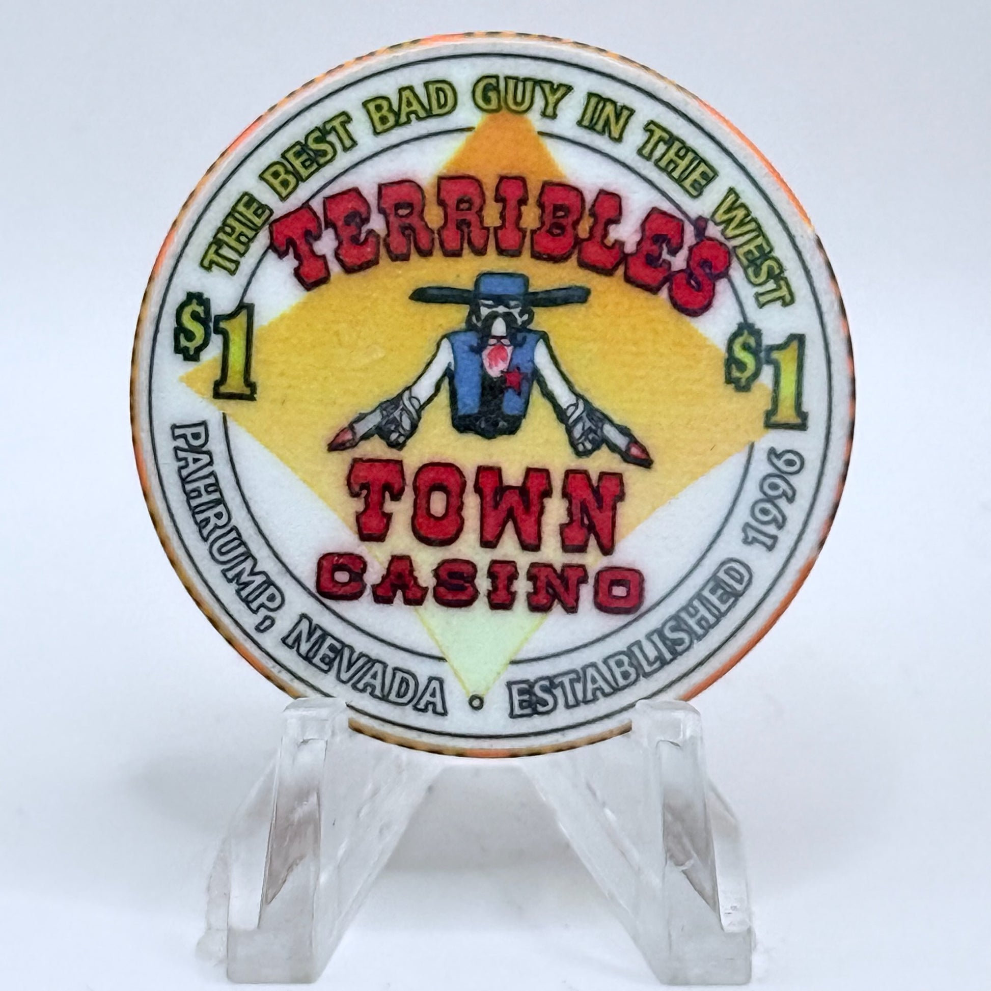 Own a piece of gambling history with this genuine 2000 $1 chip from the legendary Terrible's Town, open from 1996 to 2012.