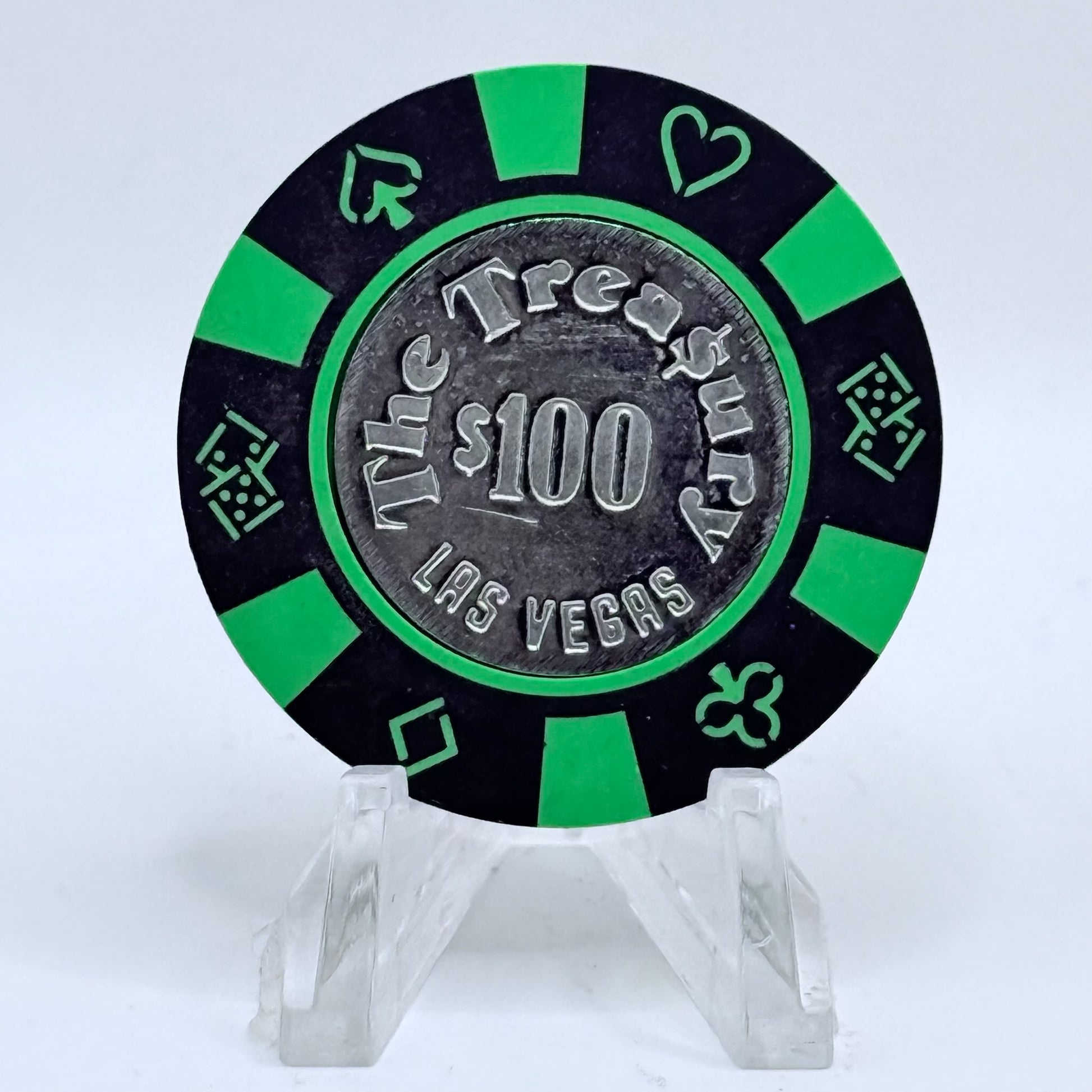 Collectors can appreciate this 1990s $100 imitation chip from The Treasury. Even if it’s not a genuine issue, it still captures a piece of history.