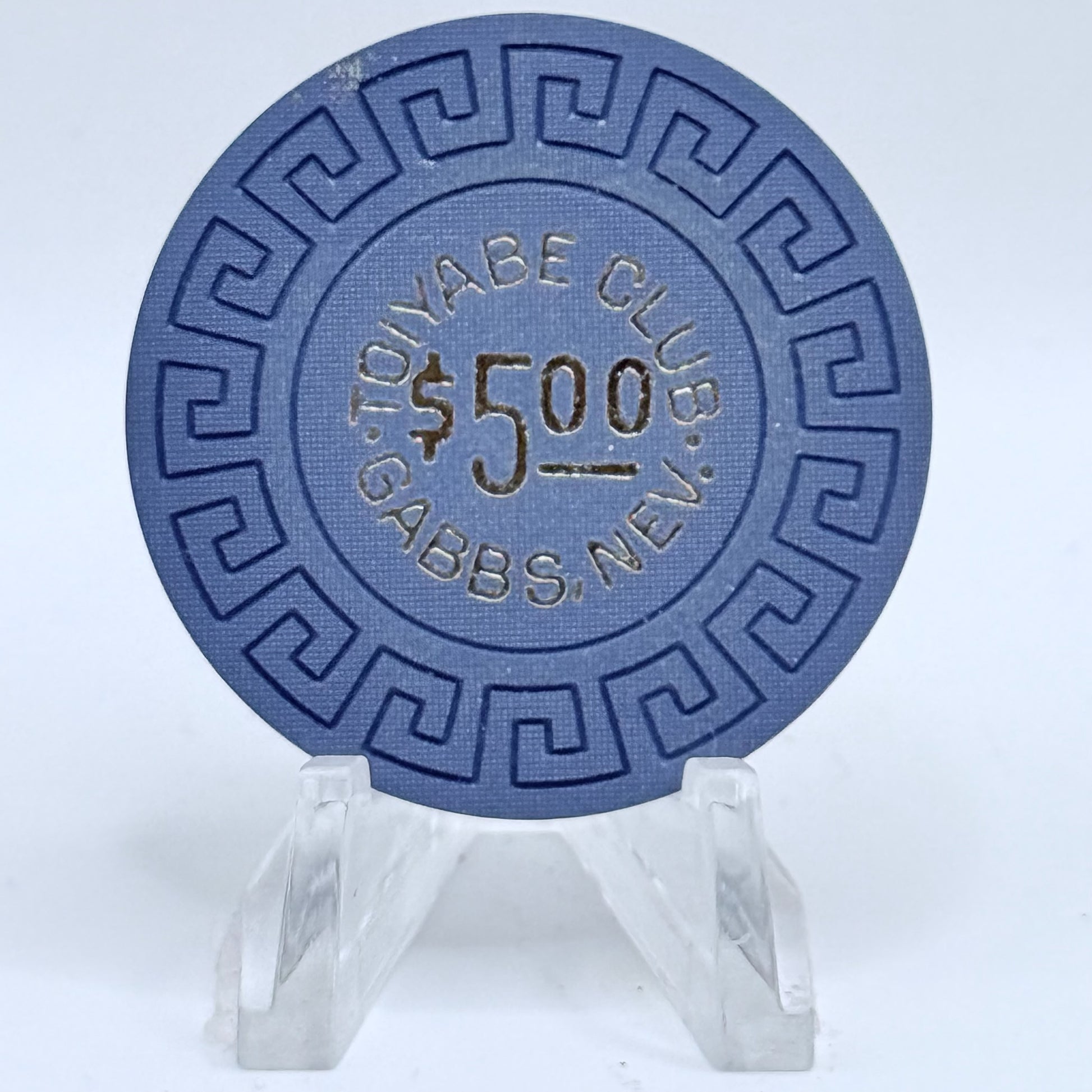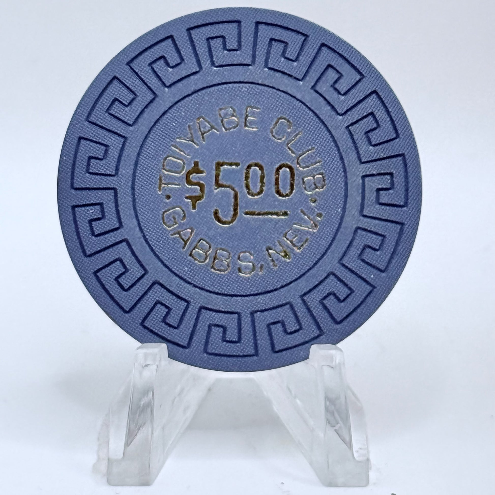 Step into the heyday of Toiyabe Club with this 1960s $5 chip, a genuine artifact from its run between 1950 and 1980 in Gabbs.