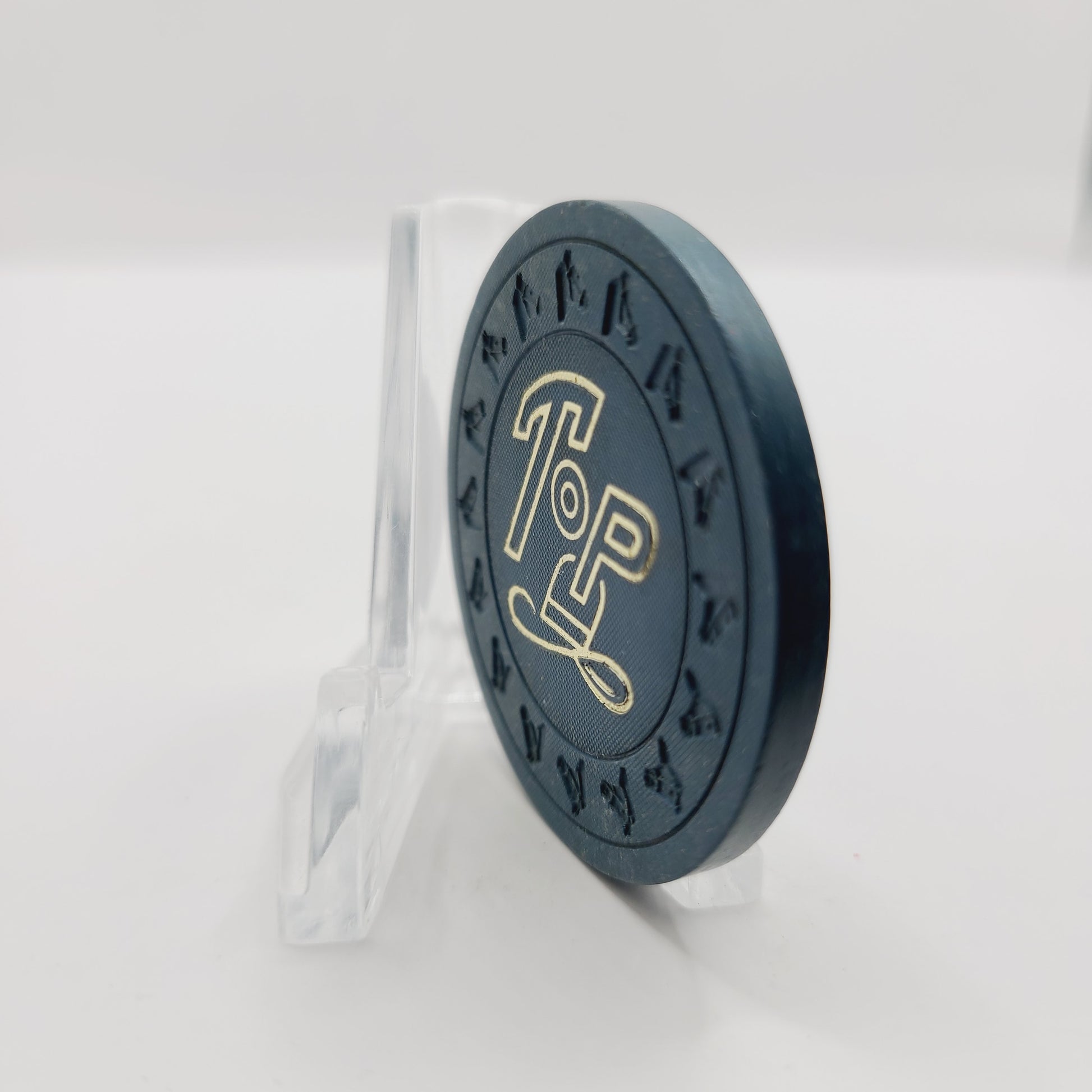 This vintage Top Hat Saloon $1 casino chip is a rare find from the historic Holtville, California card room. Opened in 1958 and closed in 1980, it offers a glimpse into the bygone era of gambling. A unique addition to any collection and a piece of gambling history.