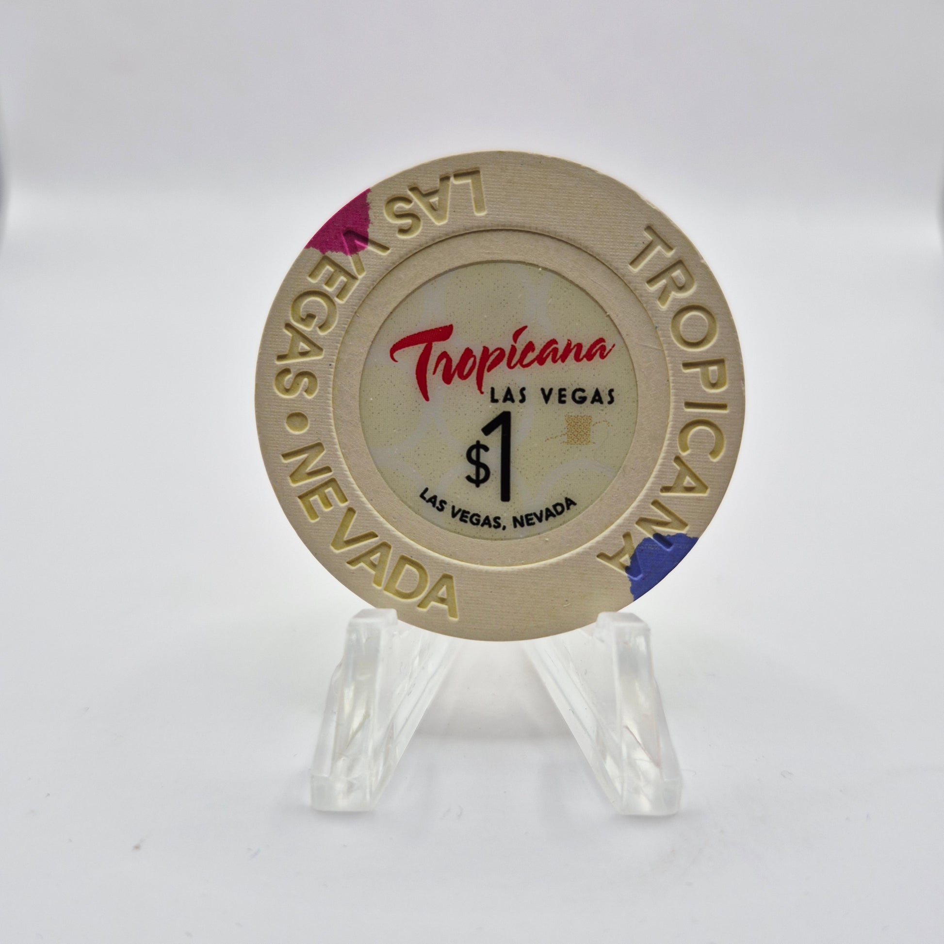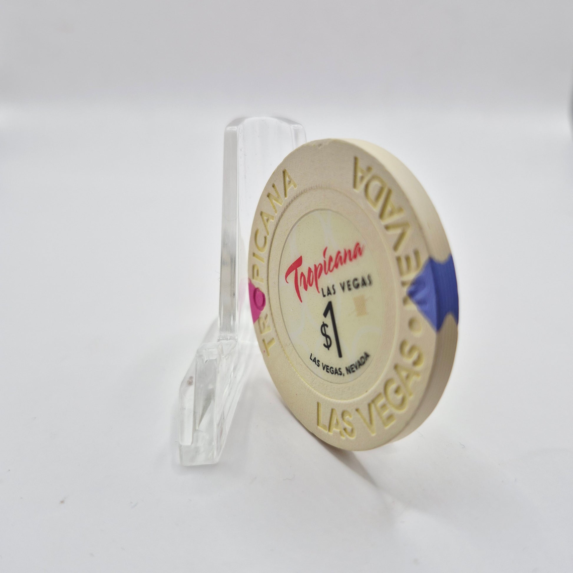 "Discover the history of Tropicana Hotel Casino in Las Vegas, opened since 1957 and closed in April 2024. Add this 2013 $1 chip, marked with D1198, to your collection and own a piece of the iconic casino's legacy."