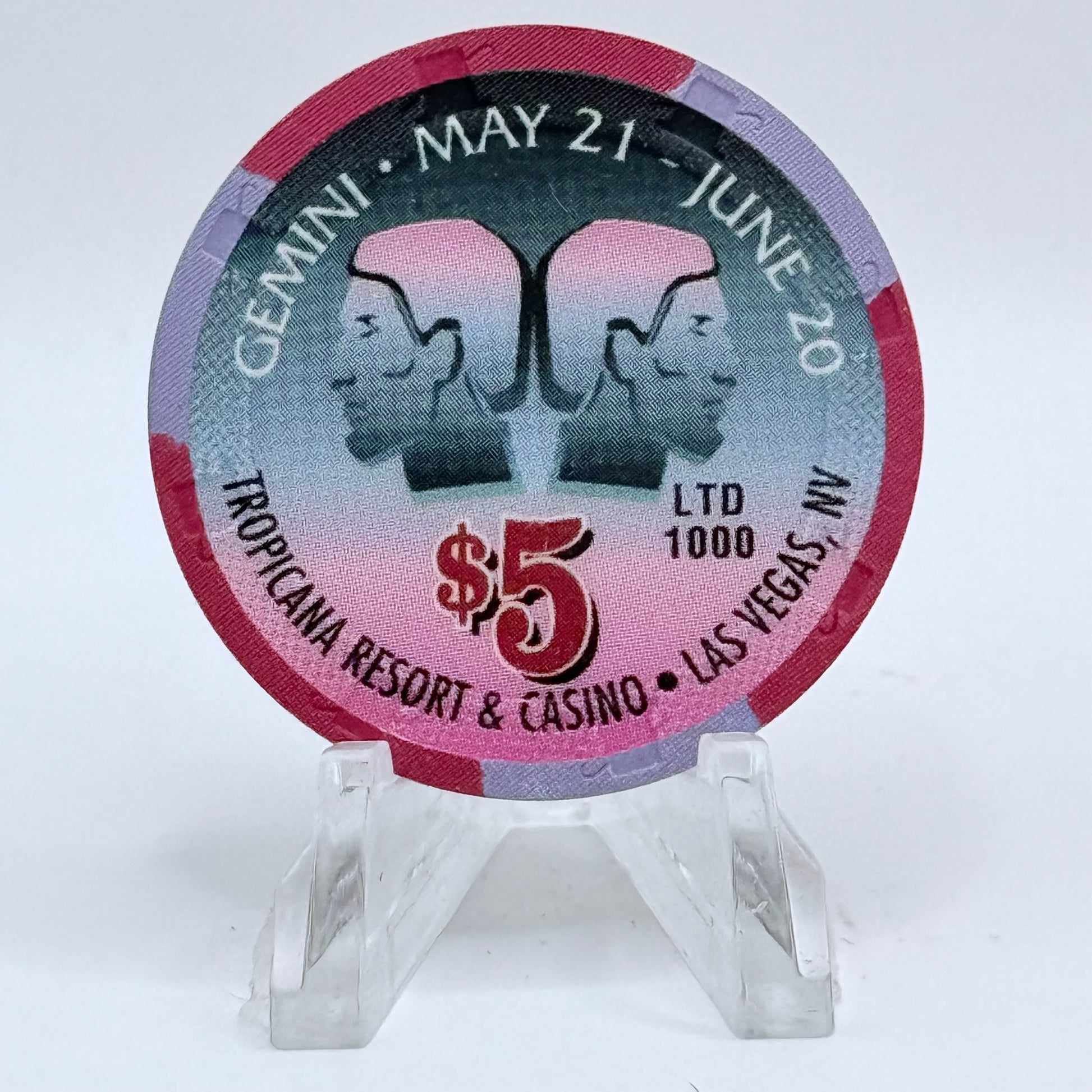 Tropicana Las Vegas Nevada 1998 'Gemini' Series 20 LE $5 Casino Chip V3544