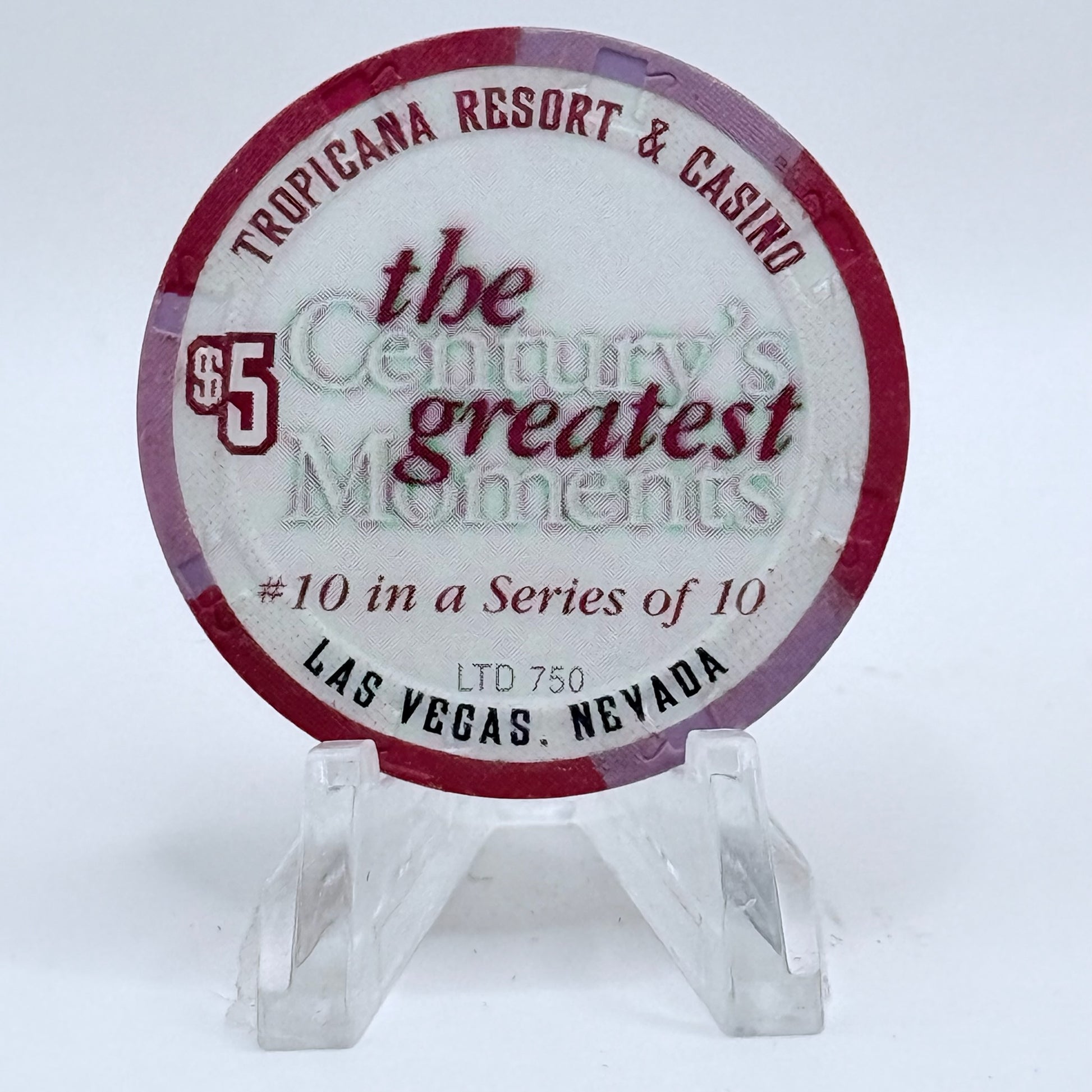 This 1999 $5 chip from Tropicana captures the spirit of Las Vegas, Nevada during its golden age between 1957 and 2024.