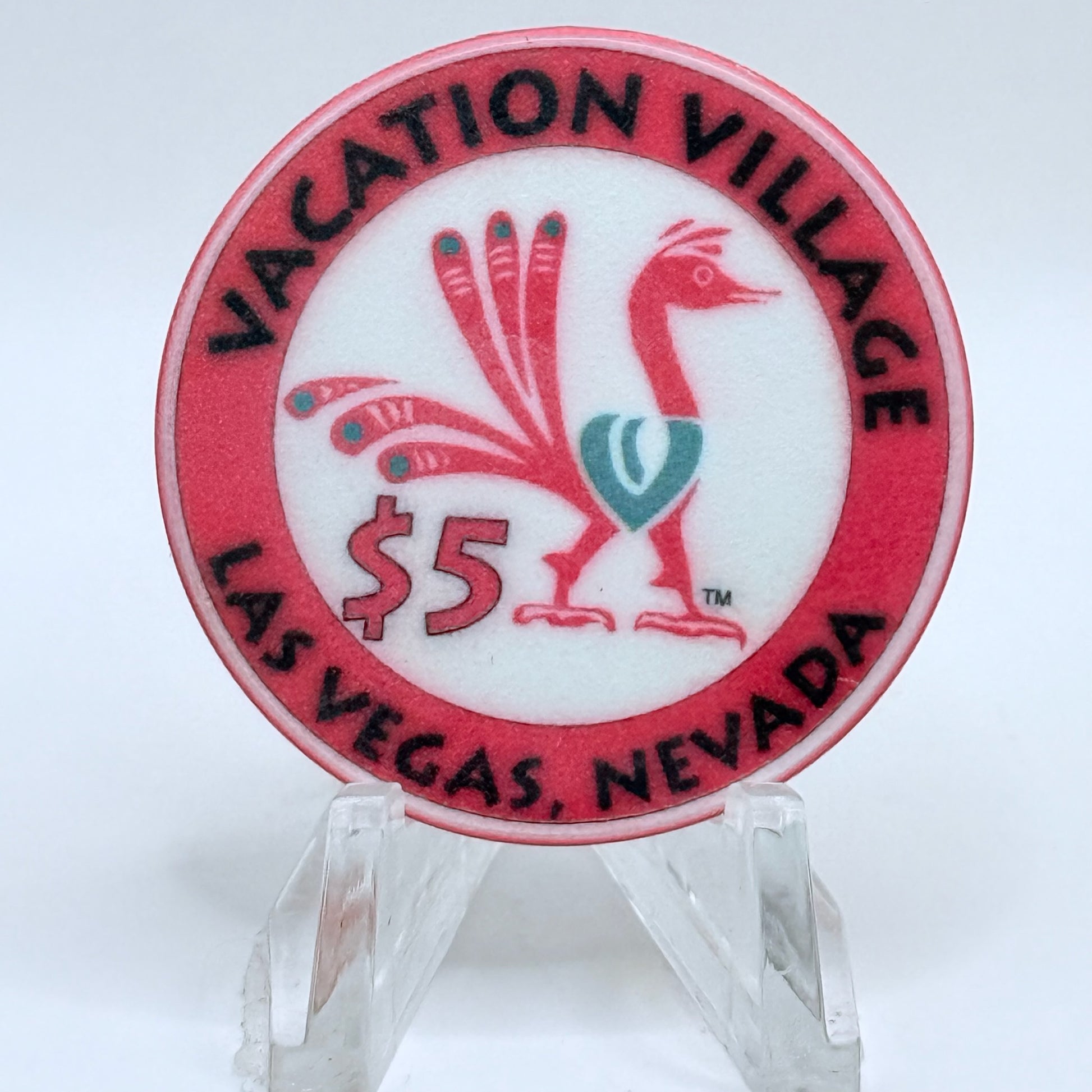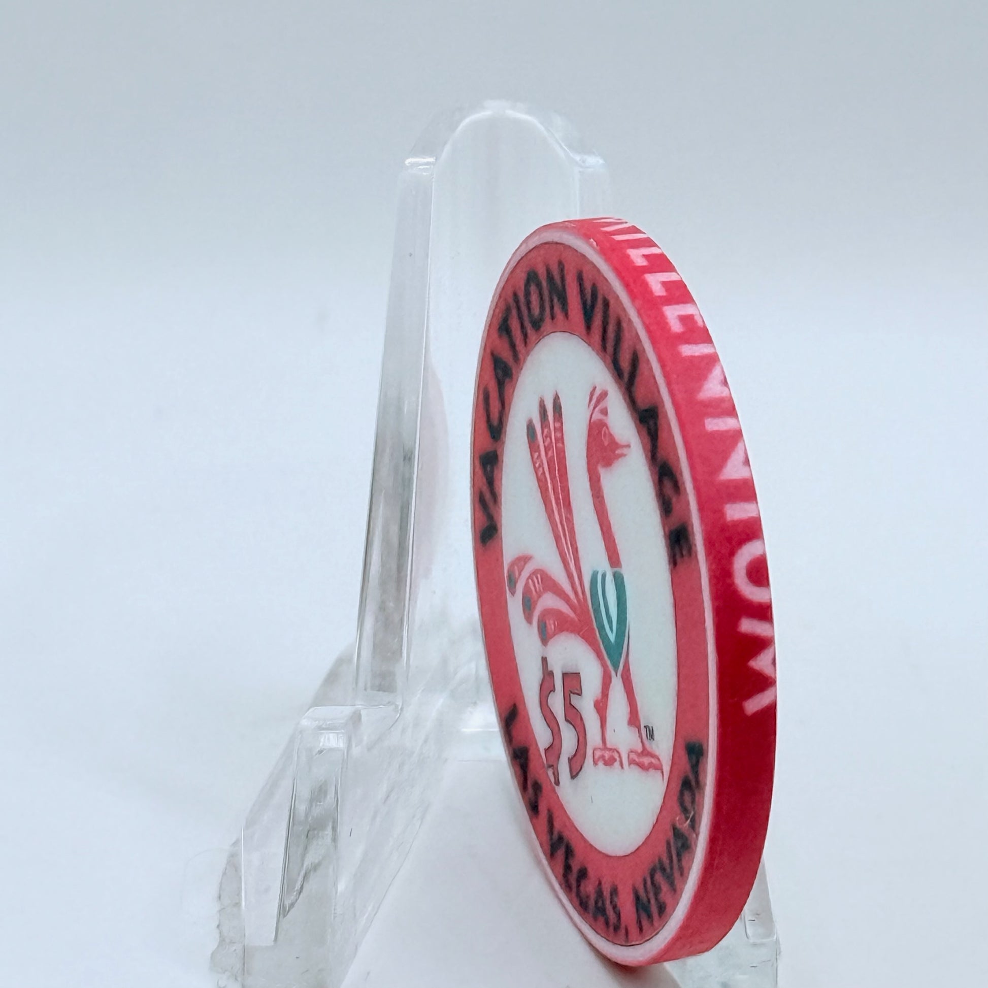 This 1999 $5 chip from Vacation Village captures the spirit of Las Vegas, Nevada during its golden age between 1990 and 2002.