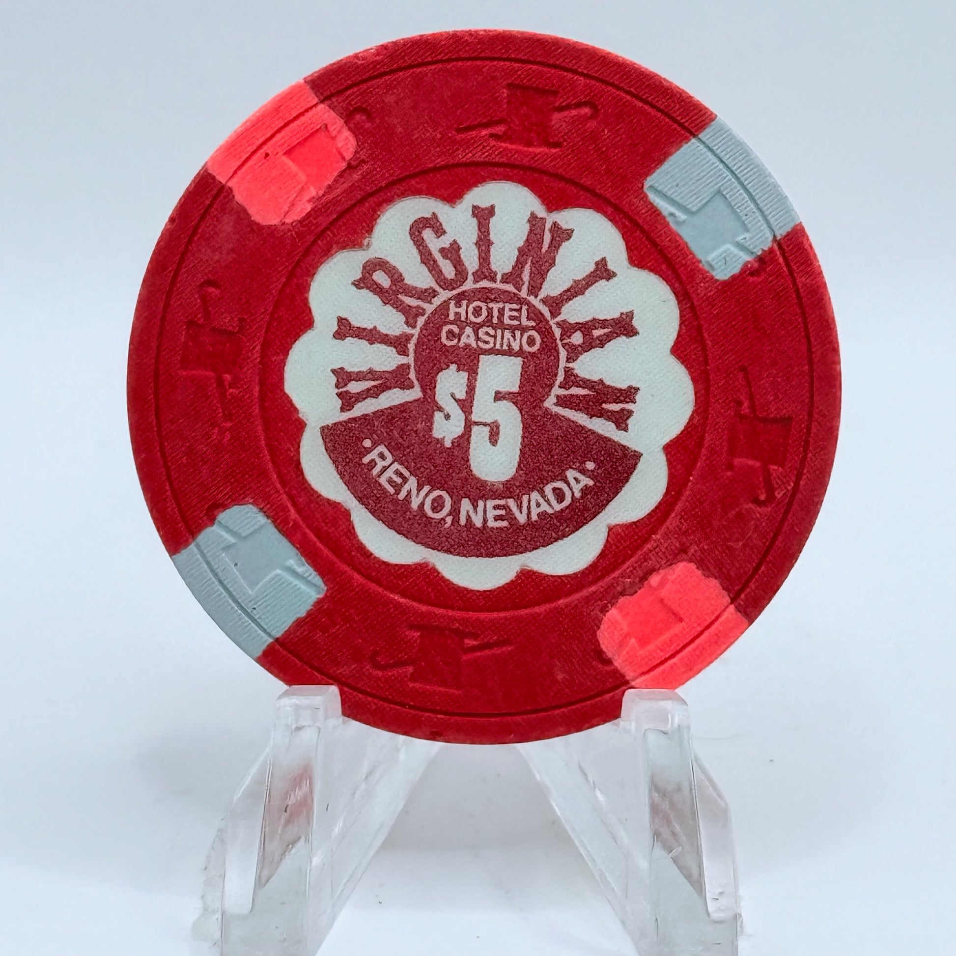 Preserved from the floors of Virginian, open from 1988 to 1997, this 1990s $5 chip embodies a bygone era of Reno gaming.